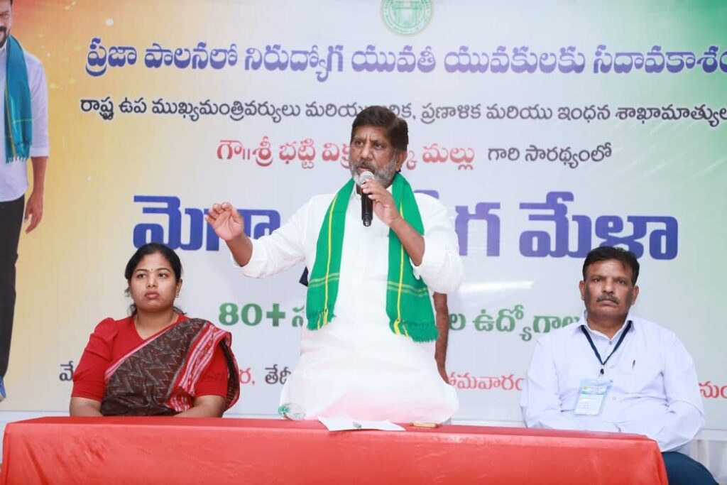 ఈ సందర్భంగా ఉప ముఖ్యమంత్రి భట్టి విక్రమార్క మల్లు మాట్లాడుతూ ఉద్యోగ మేళాలో 100కు పైగా కంపెనీలు పాల్గొని, 5 వేల మందికి ఉద్యోగాలు ఇవ్వడానికి కంపెనీ ప్రతినిధులు ముందుకు వచ్చారని, యువత ఈ అవకాశాన్ని సద్వినియోగం చేసుకోవాలని కోరారు.