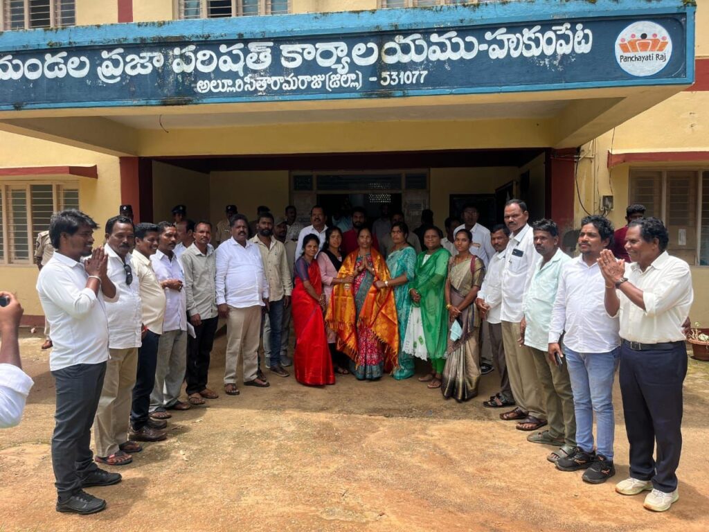 అల్లూరి జిల్లా హుకుంపేట మండల వైస్ ఎంపీపీగా విధులు నిర్వహించే ఒంటూబు ప్రియాంక ఉద్యోగ రీత్యా పదవికి రాజీనామా చేయడంతో నేడు ఆ పదవి భర్తీ చేసేందుకు జరిగిన ఎన్నికల్లో భాగంగా రంగశీల సెగ్మెంట్ ఎంపిటిసి గంజాయి. సుశీల గెలుపొందారు. అయితే నేడు ఈ వైస్ ఎంపీపీ పదవి దక్కించుకునేందుకు వివిధ కోణాల్లో రాజకీయం జరిగినప్పటికీ ఈ పదవి వైసీపీ కైవసం చేసుకుంది. ఈ సందర్భంగా నూతన వైస్ ఎంపీపీ గంజాయి.సుశీల మీడియాతో మాట్లాడుతూ ముందుగా నా ప్రజలకు, వైసీపీ పార్టీకి జీవితాంతం రుణపడి ఉంటానని ఎందుకంటే ఆనాడు నేను ఎంపీటీసీగా పోటీ చేసినప్పుడు ఈమె అయితే మనకు సేవ చేస్తుంది మన ప్రాంతా అభివృద్ధి చేస్తుందని ప్రజలు నన్ను నమ్మి నాకు ఆనాడు పదవి కల్పించారు.నేడు ఈ పదవి కూడా వారి ఆశీస్సులు వలనే దక్కిందని భావిస్తున్ననని అన్నారు. అలాగే నాకు ఎల్లవేళలా అండగా వుంటూ నన్ను ఎన్నుకున్న వైసీపీ పార్టీ నాయకులకు, ప్రజాప్రతినిధులకు, ముఖ్యంగా మన ఎమ్మెల్యే రేగం. మత్స్యలింగం వారికి కృతజ్ఞతలు తెలుపుతున్నానని అన్నారు. నన్ను నమ్మి ఈ పదవి కల్పించినందుకు గాను ప్రజల నమ్మకాన్ని ఒమ్ము చేయకుండా మరింతగా ప్రజలకు చేరువై ప్రజలతో మమేకమై వారు సమస్యలు తెలుసుకొని వారి సమస్యలు పరిష్కారం చేయడం ఖాయమని ఆమె హామీ ఇచ్చారు. ఏది ఏమైనాప్పటికీ కూటమి ప్రభుత్వం అధికారంలో ఉన్నప్పటికీ నేడు ఈ వైస్ ఎంపీపీ పదవి వైసీపీ క్యాడర్ కైవసం చేసుకోవడంతో రాబోయే ఎన్నికల్లో గెలుపు వైసీపీ దేనని వైసీపీ ప్రజా ప్రతినిధులు, నాయకులు ఆనందోత్సవాలతో సంబరాలు జరుపుకున్నారు.