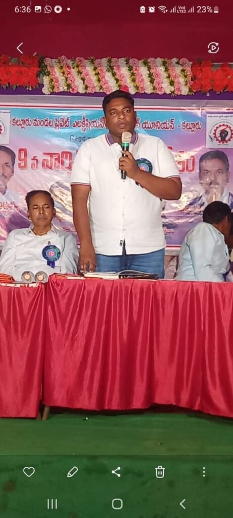 ( VRM న్యూస్ ప్రతినిధి శ్రీనివాసరాథోడ్ ): రాష్ట్రవ్యాప్తంగా భవన నిర్మాణ రంగంలో పనిచేస్తున్న కార్మికులైన ప్రతి ఒక్కరితో పాటుగా ప్రైవేట్ ఎలక్ట్రిషన్లకు కార్మిక శాఖ ద్వారా అందిస్తున్న ప్రమాద బీమాను 10 లక్షల వరకు ప్రభుత్వం పెంచాలని ప్రైవేట్ ఎలక్ట్రిషన్ల సంక్షేమ సంఘం రాష్ట్ర వ్యవస్థాపక అధ్యక్షులు జడల అంజయ్య ప్రభుత్వాన్ని కోరారు. బుధవారం పట్టణంలోని మధిర రోడ్డులో గల ఇమేజ్ ఫంక్షన్ హాల్ నందు కల్లూరు మండల అధ్యక్షుడు పథకమూడి నరసింహచారి ఆధ్వర్యంలో నిర్వహించిన ప్రైవేట్ ఎలక్ట్రిషన్ల తొమ్మిదవ వార్షికోత్సవ సభలో ఆయన ముఖ్యఅతిథిగా పాల్గొని మాట్లాడారు. ఎంతో ప్రమాదకరమైన విద్యుత్ రంగాన్ని ఆసరా చేసుకొని రాష్ట్ర వ్యాప్తంగా కొన్ని లక్షల మంది కార్మికులు తమ కుటుంబాలను పోషించుకుంటున్నారని, ఆ క్రమంలో విద్యుత్ ప్రమాదానికి గురైతే కనీసం పక్కనున్న వారు కూడా సహాయం చేయలేని స్థితిలో ఘోరంగా తమ ప్రాణాలను కోల్పోయి తమ కుటుంబాలను కష్టాలపాలు చేసుకుంటున్నారని, అటువంటి కుటుంబాలు ఆదుకోవటానికి ప్రమాద బీమా 10 లక్షల రూపాయలతో ప్రమాద బీమా తో పాటుగా, తద్వారా వితంతువులుగా మారిన మహిళలకు 5000 రూపాయలు పెన్షన్ మంజూరు చేయించాలని ప్రభుత్వాన్ని కోరారు. వారి పిల్లలకు ప్రభుత్వమే ఉచిత విద్యను అందించాలని ఆయన అన్నారు. భవన నిర్మాణ రంగంలో, సమయపాలన లేకుండా 24 గంటలు పని చేసే కార్మికులు ప్రైవేటు ఎలక్ట్రిషన్లని కితాభించారు. చాలు చాలు నాదాయంతో కుటుంబాలను పోషించుకుంటూ సరైన సమయానికి తిండి లేక పనులు చేస్తూ 40 సంవత్సరాలు దాటిన ప్రతి ఒక్కరికి దీర్ఘకాలిక వ్యాధులు చోకడంతో తమ పిల్లల్ని చదివించలేక కుటుంబాన్ని పోషించలేక అవస్థలు పడుతున్న 50 సంవత్సరాలు దాటిన ప్రైవేటు ఎలక్ట్రిషన్ లందరికీ 5000 రూపాయలు పింఛన్ సౌకర్యం కల్పించాలని కోరారు. అర్హత కలిగిన ప్రతి ఎలక్ట్రిషన్కు బ్యాంకు లింకేజీలతో సంబంధం లేకుండా కార్మిక శాఖ ద్వారా సగం సబ్సిడీతో లక్ష రూపాయలు రుణ సౌకర్యం అందించాలని కోరారు. ఎలక్ట్రిషన్ లందరూ ఐకమత్యంగా పనిచేసుకొని ఆత్మగౌరవంతో జీవించాలని పిలుపునిచ్చారు. ఈ కార్యక్రమానికి విశిష్ట అతిథిగా విచ్చేసిన విద్యుత్ ఏఈ పి. వెంకట్ మాట్లాడుతూ త్రీఫేస్ విద్యుత్ వైరింగ్ లో లోడు సమానంగా మూడు పేసులకు అందేలా వైరింగ్ చేస్తూ విద్యుత్ వృధాను అరికట్టాలని సూచించారు. మండలంలో అన్ని గ్రామాలలో ఉన్న ప్రైవేట్ ఎలక్ట్రిషన్ లందరూ విద్యుత్తు లైన్ల వలన కానీ ట్రాన్స్ఫార్మర్ల వలన కానీ ఏదైనా ప్రమాదం వాటిల్లే పరిస్థితి ఉన్నప్పుడు విద్యుత్ శాఖ వారికి సమాచారం ఇవ్వాలని కోరారు. ఆ సమాచారం డైరెక్ట్ సిబ్బందికి గాని తనకు గాని ఇవ్వాలని వారి సెల్ నెంబర్ ను, విద్యుత్ శాఖ ఎమర్జెన్సీ నెంబర్ను కూడా వారు అం
