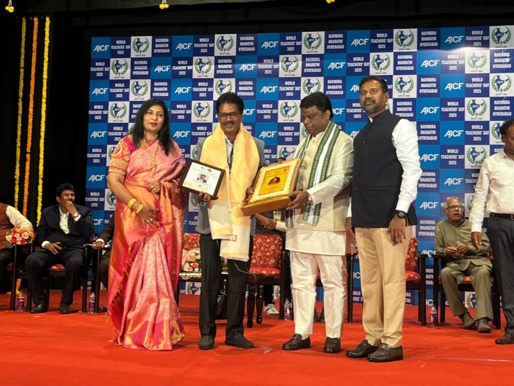 గడచిన 5/10/2025 అంతర్జాతీయ ఉపాధ్యాయ దినోత్సవాన్ని పురస్కరించుకొని హైదరాబాద్ రవీంద్ర భారతి లో ఇటీవల 7/10/2025 నాడు ఏర్పాటు చేయబడిన ఉత్తమ ఉపాధ్యాయ అవార్డులు బహూకరణలో ముఖ్య అతిథిగా డాక్టర్ వైయస్ విమల రెడ్డి తెలంగాణ రాష్ట్ర మైనార్టీ చైర్మన్ దీపక్ జాను స్టేట్ మైనార్టీ కమిషన్ వైస్ చైర్మన్ శంకర్ లుక్ తెలంగాణ స్టేట్ ఫుడ్ కమిషనర్ నెంబర్ ఆనంద్ తదితరులు పాల్గొన్నారు జాతీయస్థాయిలో క్రైస్తవ విభాగంలో అనేక రంగాలలో ఉన్నతమైన సేవలను అందిస్తున్నటువంటి వారిని సత్కరిస్తూ దీనిలో భాగంగా ఆంధ్రప్రదేశ్ కాకినాడ జిల్లా ప్రత్తిపాడు గుడాల సుందర్రావును జాతీయ ఉత్తమ ఉపాధ్యాయునిగా ఎంపిక చేసి ఈ అవార్డును బహూకరించడం జరిగినది ఈయన గతంలో జిల్లాలో రెండుసార్లు కలెక్టర్ చేతుల మీదుగా జిల్లా ఉత్తమ ఉపాధ్యాయ అవార్డును మరియు జిల్లా ఉత్తమ రిసోర్స్ పర్సన్ అవార్డును అందుకొని స్వచ్ఛంద సంస్థల నుండి జిల్లా రాష్ట్ర స్థాయి ప్రశంసా పత్రాలను అందుకొనిన విధానాన్ని బట్టి మరియు క్రైస్తవ్యం లో ఆధ్యాత్మికంగా సేవలందిస్తూ అనేకమందికి ఆర్ధిక అవసరాల సహాయ సహకారాలు అందిస్తూ అనేకమందికి ఆదర్శంగా ఉన్న విధానాన్ని బట్టి వారిని గుర్తించి జాతీయస్థాయి ఉత్తమ ఉపాధ్యాయ అవార్డును అందించి సత్కరించడం జరిగినది ఈ కార్యక్రమంలో అనేక ప్రాంతముల నుండి వందలాదిమంది విశ్వాసులు అనేక ప్రాంతాల నుండి క్రైస్తవ నాయకులు రాష్ట్రాల జిల్లాల స్థాయి నుండి వేలాదిమందిగా పాల్గొన్నారు ఈ కార్యక్రమమును ఏ ఐ సి ఎఫ్ వ్యవస్థాపకులు గద్దపాటి విజయ రాజు అధ్యక్షతన కార్యక్రమాన్ని నిర్వహించారు వారి స్పందనలో వెనుకబడిన వారిని ముందు ఉంచడమే సంస్థ యొక్క ధ్యేయమని తెలిపారు ఈ సందర్భంగా గుడాల సుందర్ రావు పొందిన జాతీయ ఉత్తమ ఉపాధ్యాయ అవార్డును బట్టి పాస్టర్స్ జిల్లా నాయకులు డాక్టర్ ఇమ్మానుయేల్ మాస బిషప్ సిహెచ్ అబ్రహం శామ్యూల్ ఏ పి పి ఎఫ్ రాష్ట్ర నాయకులు డాక్టర్ జె జాన్ సామ్యూల్ డి రాజు బాబు రీజనల్ చైర్మన్ రెవ షాలేము రాజాల వైస్ ప్రెసిడెంట్ సి హెచ్ అండ్ సెక్రెటరీ రెవ జి ప్రభాకర్ మండల కమిటీ పి ఎం పి ఎఫ్ నాయకులు స్థానిక మండల పాస్టర్స్ శుభాకాంక్షలు తెలిపిరి