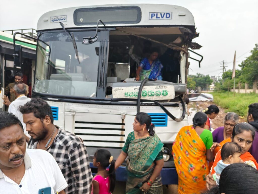 మండల కేంద్రంలోని కడప చెన్నై జాతీయ రహదారిపై ఆగి ఉన్న లారీని వెనుకవైపు నుండి ఢీకొట్టిన ఆర్టీసీ బస్సు. స్థానికుల వివరాల మేరకు.. కడప నుండి తిరుపతికి వెళుతున్న ఆర్టీసీ బస్సు వీరాంజనేయ స్వామి గుడి వద్దకు రాగానే లారీని తప్పించబోయి ఆగి ఉన్న లారీని ఢీ కొట్టింది. ఈ ప్రమాదంలో కండక్టర్ యంగముని(62) చెయ్యి విరిగి రక్త గాయం అయింది. జాతీయ రహదారి ఒంటిమిట్ట వీరాంజనేయ స్వామి ఆలయం దగ్గర హైవే విశాలంగా లేని కారణంగానే ప్రమాదాలు ఒంటిమిట్ట ప్రజలు అంటున్నారు.