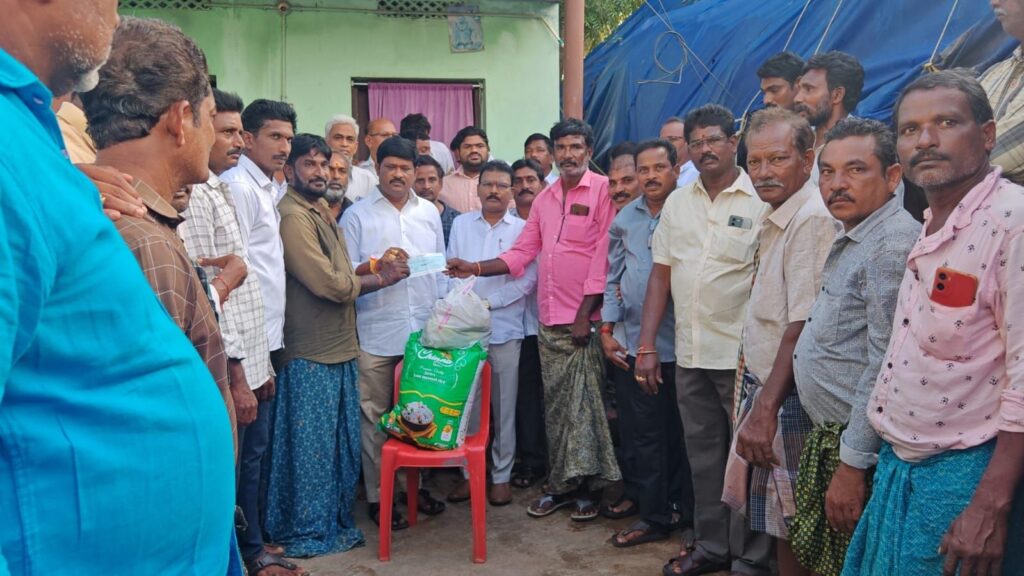 కుటుంభానికి 10 వేల రూపాయల ఆర్ధిక సహాయం తోపాటు 25 కేజీల బియ్యం,నిత్యావసర సరుకులను మురళీ రాజు అందించారు.