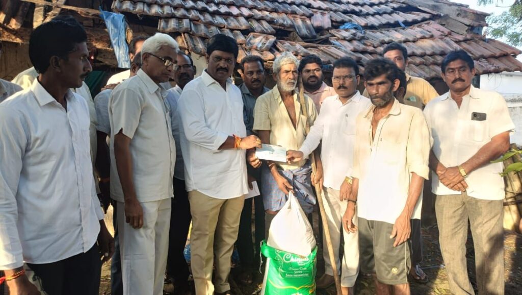 ఇదే గ్రామానికి చెందిన చుక్కల తాతారావు కి చెందిన పెకుటిల్లు కూలడతో దానిని పరిశీలించారు, వారికి బియ్యం, నిత్యావసర సరుకుల, తో 5 వేలు రూపాయల ఆర్ధిక సహాయం అందించారు.