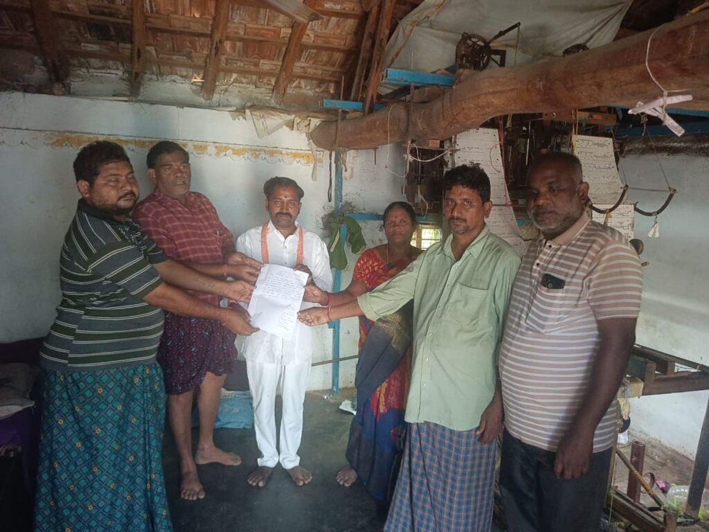 మండలంలోని మాధవరం-1 పరిధి పార్వతీపురం లోని చేనేత కార్మికుల మగ్గం గుంతలను శుక్రవారం జనసేన రాష్ట్ర చేనేత వికాస కార్యదర్శి రాటాలరామయ్య పరిశీలించారు. బాధితుల వినతి మేరకు చేనేత కార్మికులను వివరాలు అడిగి తెలుసుకున్నారు.ఈ సందర్భంగా రామయ్య మాట్లాడుతూ ఇటీవల కురిసిన భారీ వర్షాల కారణంగా మగ్గం గుంతల్లోకి నీరు చేరింది. దీంతో సామాగ్రి దెబ్బతినడమే కాకుండా కూలి పనులు కూడా నిలిచిపోయాయన్నారు. ఈ కారణంతో కుటుంబ పోషణ భారంగా మారి ఇబ్బందులను ఎదుర్కొంటున్నారన్నారు. ఈ విషయాన్ని డిప్యూటీ సీఎం పవన్ కళ్యాణ్ దృష్టికి తీసుకెళ్లి చేనేత కార్మికులను ఆదుకునే దిశగా చర్యలు చేపడతామని రామయ్య తెలిపారు.