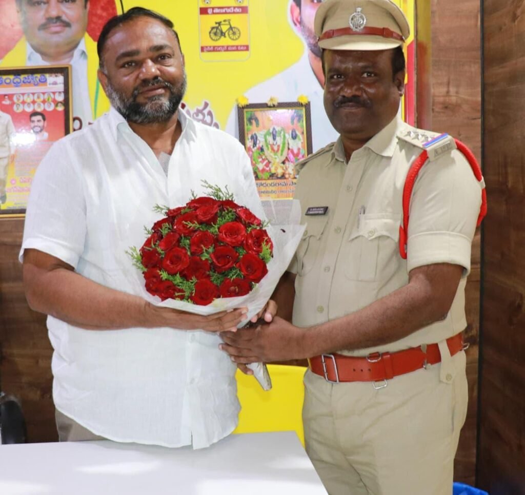Lగురువారం నాడు ఒంటిమిట్ట మండల నూతన సర్కిల్ ఇన్స్పెక్టర్ ఆఫ్ పోలీస్ సి.ఐ నరసింహా రాజు రాజంపేట తెదేపా పార్లమెంట్ అధ్యక్షులు – నియోజకవర్గ ఇంచార్జ్ శ్రీ చమర్తి జగన్ మోహన్ రాజు ని మర్యాదపూర్వకంగా కలిశారు. గురువారం నాడు తన క్యాంప్ కార్యాలయం నందు ఇన్చార్జ్ ని కలిసి పుష్పగుచ్చం అందజేశారు. అనంతరం మండల పరిధిలో శాంతిభద్రతల గురించి ఇరువురు కాసేపు చర్చించుకున్నారు.