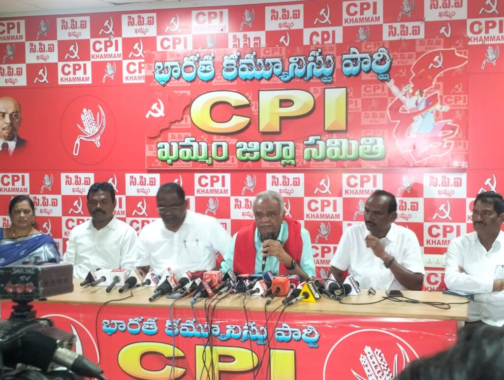 సిపిఐ పార్టీ ఆవిర్భవించి వంద సంవత్సరాలు పూర్తి చేసుకున్న సందర్భంగా మాట్లాడుతూ పార్టీ ఎప్పుడూ ప్రజల పక్షాన ఉంటుంది, దేహం ముక్కలైనా దేశాన్ని ముక్కలు కానివ్వమంటూ ఉద్గటించారు, అమెరికా అధ్యక్షుడు ట్రంప్ భారత దేశంపై విధించిన ఆంక్షలను వ్యతిరేకించారు, అదేవిధంగా భద్రాచలంలోని ఐదు మండలాలను తెలంగాణలో కలపాలని డిమాండ్ చేశారు, అదేవిధంగా ఈనెల 18వ తేదీన వివిధ దేశాల నుంచి విచ్చేస్తున్న అగ్రనేతలు పాల్గొంటున్నారు, కాబట్టి పార్టీ కార్యకర్తలు పాత్రికేయులు ఈ కార్యక్రమంలో పాల్గొని అందరూ ఈ కార్యక్రమాన్ని విజయవంతం చేయగలరని కోరారు.