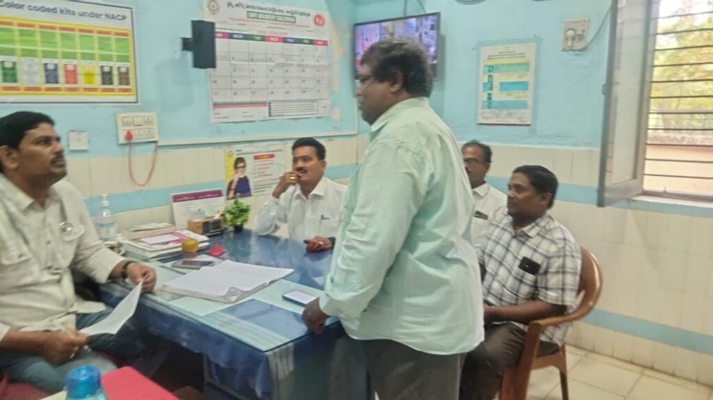 నందలూరు ప్రాథమిక ఆరోగ్య కేంద్రం లో మీటింగ్ నిర్వహించడం జరిగింది కీటక జనిత వ్యాధులు గురించి అవగాహన సదస్సు ద్వారా తెలియచేయబడింది ప్రతి శుక్రవారం గ్రామ సచివాలయం పరిధిలో ఫ్రైడే డ్రై డే పాటించాలని డాక్టర్ శరత్ కమల్ గారు తెలియజేశారు ప్రతి సోమవారం గ్రామస్థాయి పరిధిలోని పరిధిలోని నీటి నిలువలో ఉన్న ప్రదేశాలను మరియు దోమలు ఉత్పత్తి కలుగజేసే ప్రదేశాలను ఏఎన్ఎం యాప్ ద్వారా ఆరోగ్య కార్యకర్త యాప్ ద్వారా ప్రతి సమస్యను తప్పనిసరిగా ప్రతి సోమవారము అప్లోడ్ చేయాలి సబ్ యూనిట్ ఆఫీసర్ ఇండ్ల సుబ్బరాయుడు తెలియజేశారు ఈ మీటింగ్ అని పాల్గొన్నవారు మండల హెల్త్ సూపర్వైజర్ సునీల్ కుమార్ ఆరోగ్య కార్యకర్త మధుసూదన్