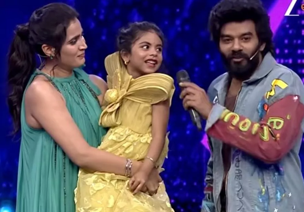 “రాధిక అక్క” అంది. “ఓకే నేను చాల సంతోషంగా ఉన్నాను” అనేసింది రాధిక. “రంభ, ఊర్వశి, మేనక ముగ్గురినీ కలిపితే రాధికా” అంటూ గట్టిగానే పొగిడేసింది. “ఓహ్ రైట్” అంటూ రాధిక తెగ సిగ్గుపడిపోయింది. తర్వాత చంద్రుళ్ళో ఉండే కుందేలు అనే సాంగ్ కి ఈర్య చాల క్యూట్ గా డాన్స్ చేసింది. తర్వాత నిహారిక, కావ్య ఇద్దరూ కూడా ఈర్యతో డాన్స్ చేసారు. ఇక వాళ్ళ పక్కకు సుధీర్ వచ్చి “ఫ్యామిలీ ఫోటోలా ఉంది ఇదేంటో” అన్నాడు. దాంతో అప్పటివరకు ఈర్యను ఎత్తుకుని డాన్స్ చేసిన కావ్య ఆమెను సడెన్ గా కిందకి దించేసింది. అంతే అందరూ నవ్వేశారు.